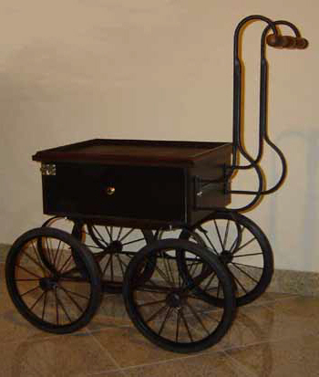O carro lembra um modelo antigo com as suas rodas finas de borracha dura. No entanto, não absorve os choques provocados pelos pavimentos de pedra. O uso prolongado deste carro não é recomendado para o realejo. O carro é recomendado para salões, pois é visualmente atraente. Com um peso de aproximadamente 12 kg, não é difícil metê-lo no porta-bagagem de qualquer automóvel