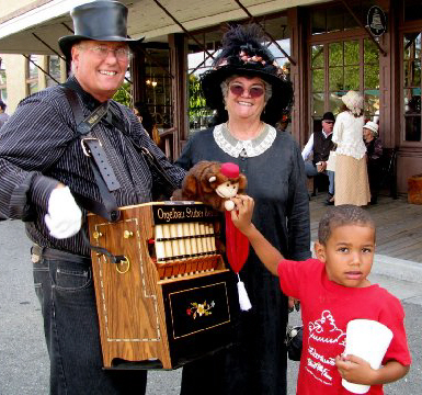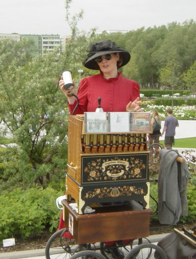 Realejo de rua simples com grande variedade de sons / 33 tubos / registo de violino (10 violinos) intermutável / 10 flautas “piccolo" ("pan") / 13 tubos tapados, incluindo três baixos duplos / fole duplo / reprodução no quadro amovível situado no painel frontal do realejo / também disponível com embutidos de madeira e aplicações de metal e tubos de bambu.